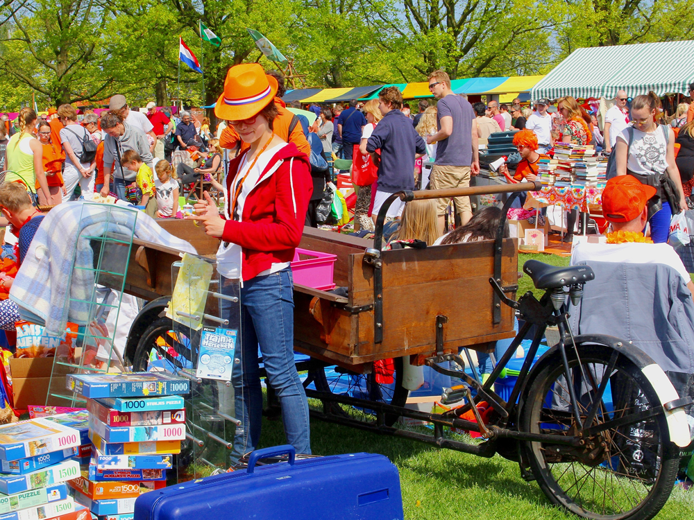 An essential part of King’s Day is the flea market. Throughout the city, people are selling their things, and with a bit of luck you’ll find unique items at a great price. Think books, ceramics, toys, jewellery, vintage clothing and much more. It’s perfect for a casual stroll and gives you the chance to make some truly special finds.